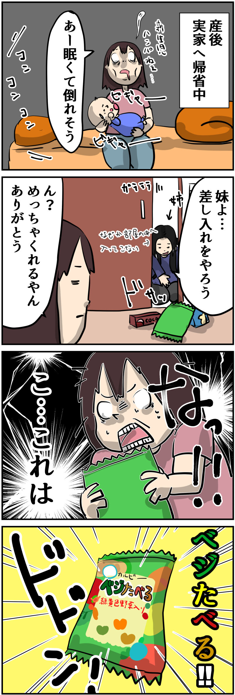 その際差し入れを何回か姉がくれたのですが1番驚いたのが、カルビーのベジたべるというお菓子でした。