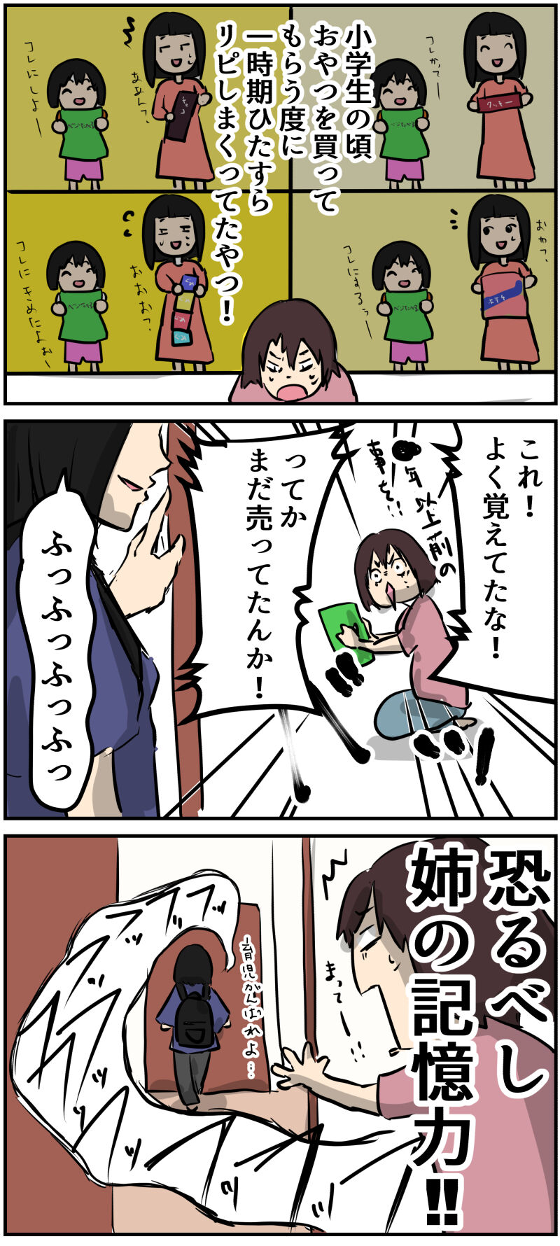 姉の中ではさほど美味しくも無いのになぜかうまい!うまい!と食べる妹が変に映って今でも覚えていたんでしょうか。