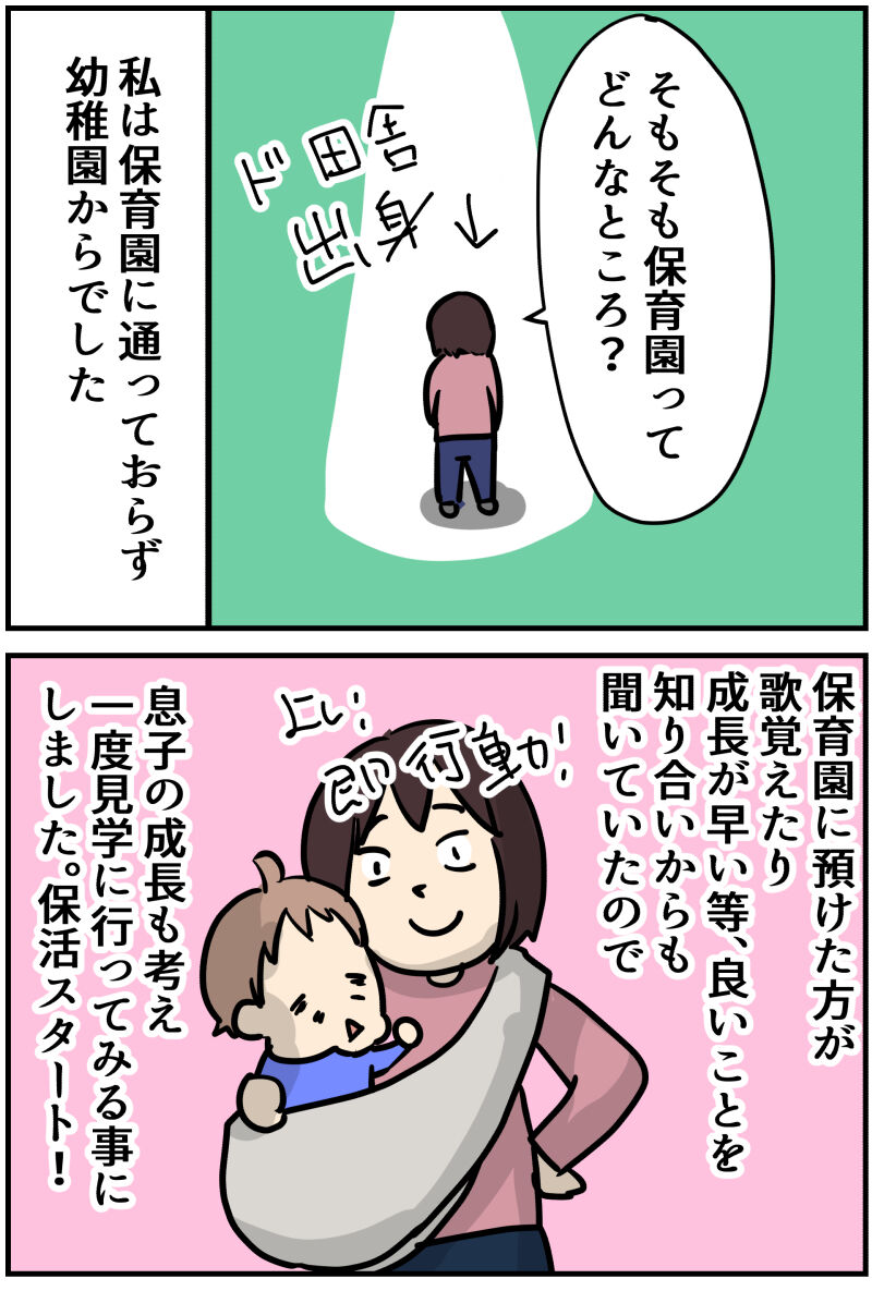 私は保育園に行かず、幼稚園からでした。なので保育園がどんな所か知りません。