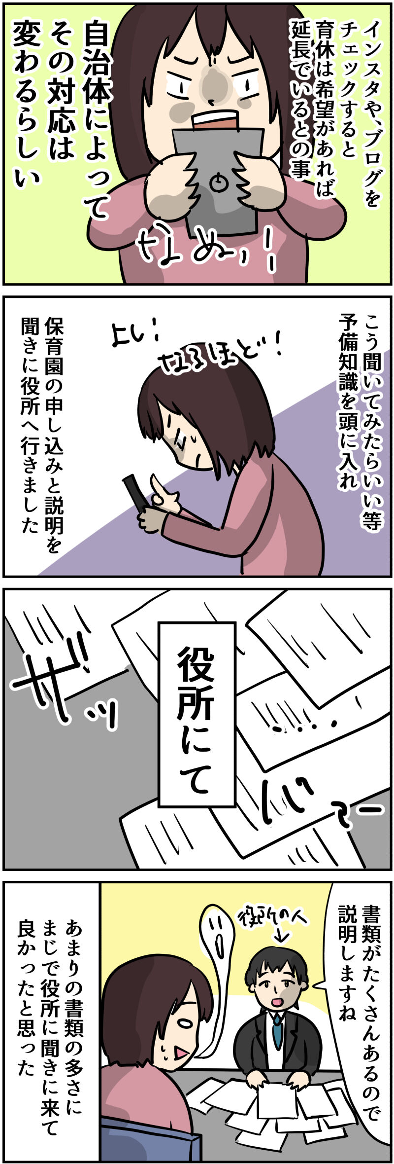 余談ですが、たまに子育て支援センターで会うママ友も育休が延長できるのを知らなかったみたいで、窓口でこの話を言われて「延長できるならしたいです」と答えたそうです。
