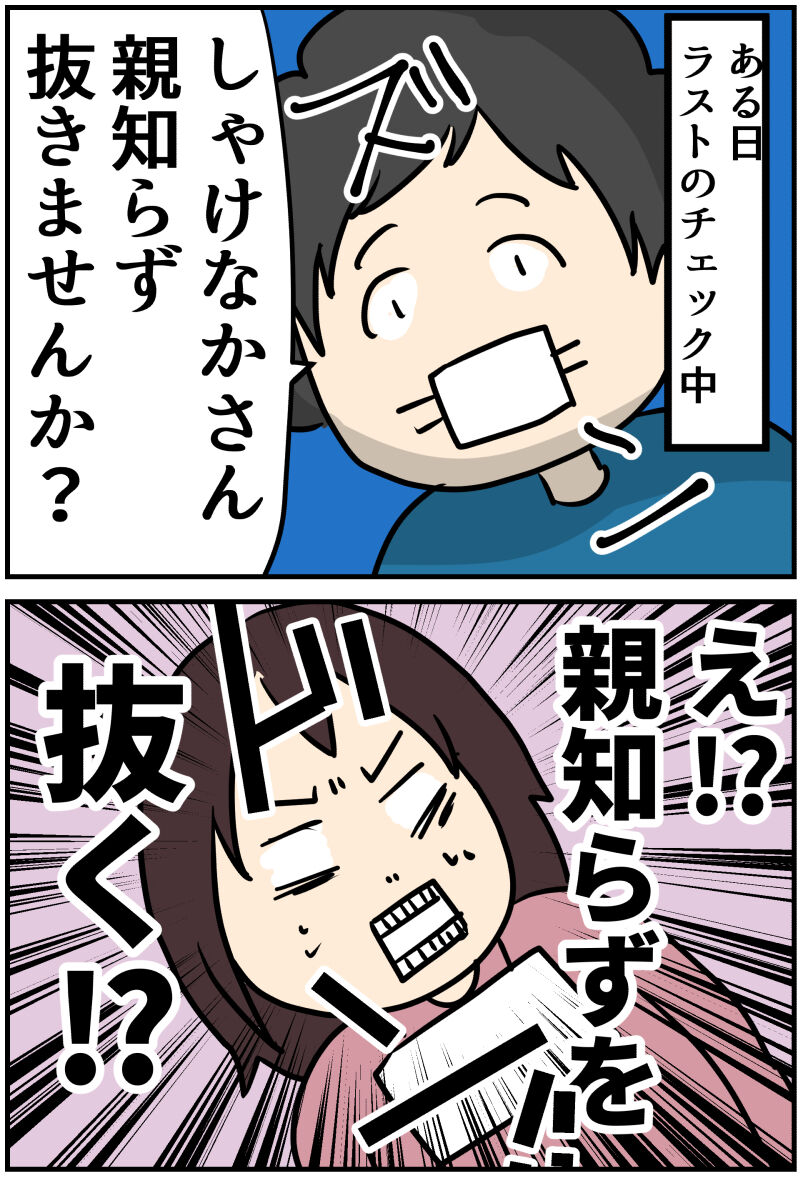 2022年07月21日 【虫歯・歯周病】7年ぶりに歯医者に行った話【親知らず抜歯】 ⑬ 前回の記事はこちら やっと褒められる歯になりました!!!歯磨き粉を変えてからというもの出血が劇的に減って、歯科衛生士さんも「歯磨き頑張ってますね」と話してくださるようになりました。本当歯磨き粉のおかげなんだ…。ちなみに出血で出てくる血は悪い血ならしくどんどん出した方が良いそうです。最後のチェック…親知らずの話がでてきました。これも怖くて避けていました。さあどうする!?私!!!!!!!!!!次の記事はこちら ■□■□■□■□■□■□■□■□■□■□ブログのまんがをまとめました!一気読みはこちら!無料です! にほんブログ村登録してみました! タグ :#虫歯#歯医者#歯周病#親知らず 「日常漫画」カテゴリの最新記事 < 前の記事次の記事 > コメント コメントフォーム 名前 コメント 記事の評価 リセット リセット 顔 星 情報を記憶 コメントを投稿する