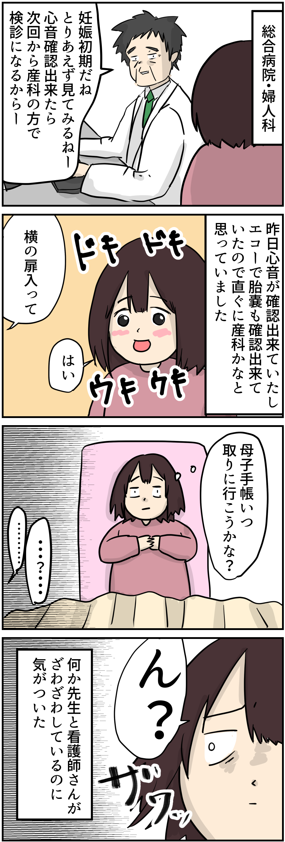 2023年02月27日 【妊娠初期】胎嚢が見えない!?④【消えた?】 前回の記事はこちら この病院では紹介状をもらうと、すぐに産科へ行くのではなく、婦人科で受診になり、赤ちゃんの胎嚢や心音確認が出来て妊婦健診になると、産科での受診になるようです。まあ。。。ワクワクして行きますよね。エコーでまた赤ちゃんに会えると思って行ったので…結果は空っぽと言われて凄い声出ました…。次回に続きます。 続きはこちら ■□■□■□■□■□■□■□■□■□■□にほんブログ村登録してみました! タグ :#エコー#妊婦健診#妊娠初期 「妊娠中」カテゴリの最新記事 < 前の記事次の記事 > コメント コメントフォーム 名前 コメント 記事の評価 リセット リセット 顔 星 情報を記憶 コメントを投稿する