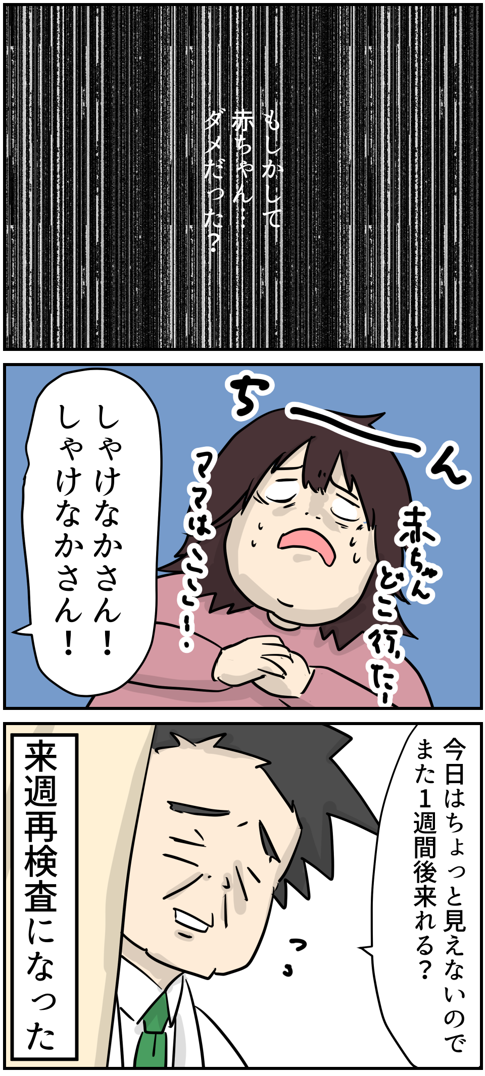 それを聞いた時、パニックになりました。だって昨日の今日ですよ!お腹の中の赤ちゃんが見えなくなって、さらにこれかなと思うような影は小さすぎるって…(おそらく出血の影)