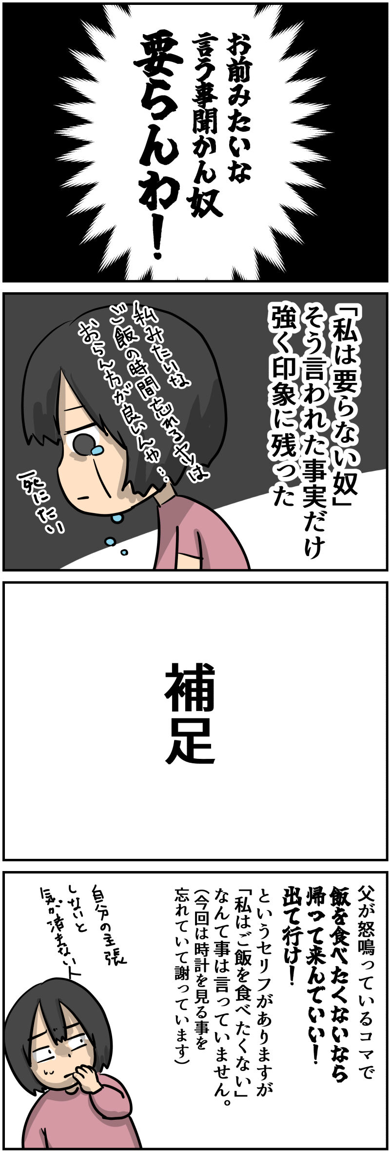 母親との会話も聞いていたはずなのに「飯が食べたくないなら~」とトンチンカンな事言ってましたね。私がなかなかいつも遊んでいて帰って来ないなら分かるのですが…。