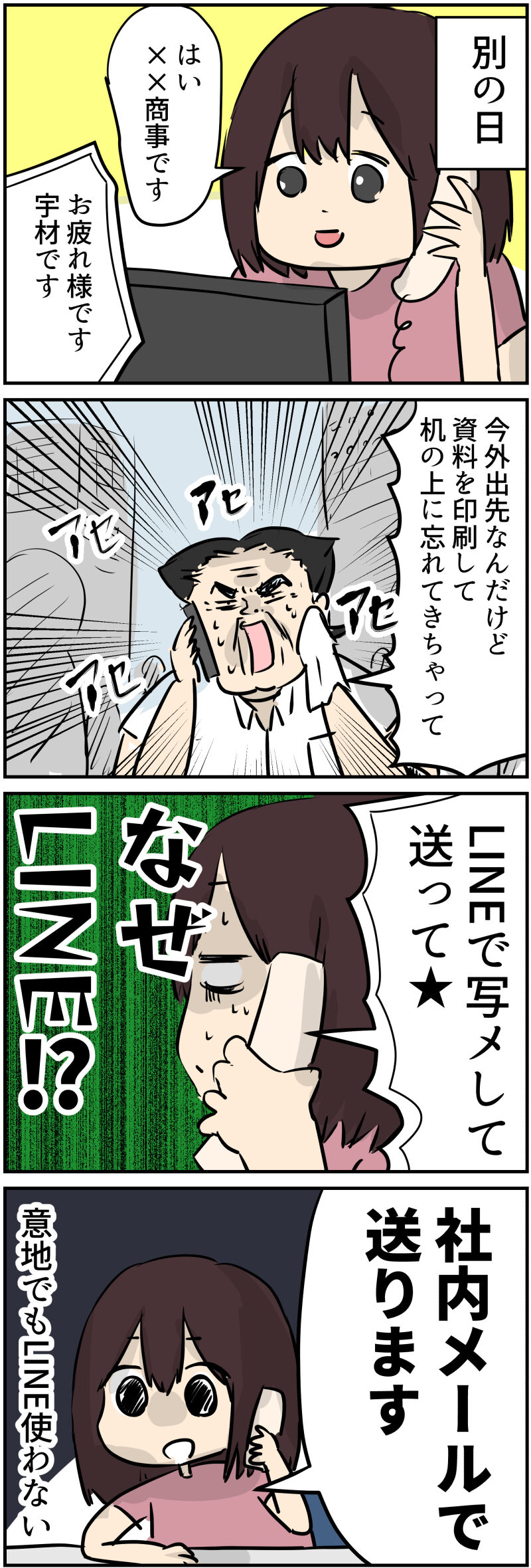 2023年09月19日 【ブラック企業の日常19】仕事でLINE(個人アカウント)を使いたくない⑥終 前回の記事はこちら 私がLINE嫌置いておいても、普通に業務端末でもない私のスマホで、仕事の書類写メしてLINEで送るのアウトだろ!個人情報とか、会社の情報とか漏洩に関してリテラシー低すぎるからLINE使おうってなるんだと思います。他にも「コレ情報漏洩の観点からアウトでしょ」みたいな事は日常茶飯事でした。ブラック企業でなくてもリテラシー低い会社は、取引先にもリスクがあると思います。次の記事はこちら ★おすすめ記事 ■□■□■□■□■□■□■□■□■□■□ブログのまんがをまとめました!一気読みはこちら!無料です! にほんブログ村登録してみました! 「ブラック企業」カテゴリの最新記事 < 前の記事次の記事 > コメント コメントフォーム 名前 コメント 記事の評価 リセット リセット 顔 星 情報を記憶 コメントを投稿する