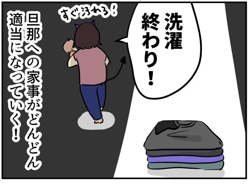 2023年09月30日 夫への日頃の不満からの静かな復讐 明日に回せばいいだけなのも分かってるのですが、イライラしてて何としてでも「終わり!」にしたかったんです。この時。旦那に食器洗い頼めば、ちゃんと洗えてなくて結局私がまた洗うとか旦那への不満が積もっていて静かな復讐も兼ねています。笑どうせ、娘ちゃんを抱っこしたらちゅっちゅっしてくるし秒で濡れるしもういいだろ!!!汗とかは落ちてるから!!!!!臭くないし!おすすめ記事娘のよだれで喜ぶ夫↓全9話完結済み↓ ■□■□■□■□■□■□■□■□■□■□ブログのまんがをまとめました!一気読みはこちら!無料です! にほんブログ村登録してみました! 「育児漫画」カテゴリの最新記事 < 前の記事次の記事 > コメント コメントフォーム 名前 コメント 記事の評価 リセット リセット 顔 星 情報を記憶 コメントを投稿する