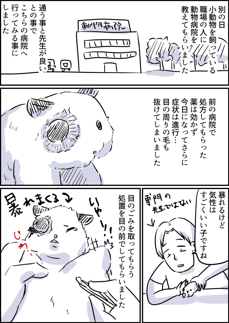見ていただいた先生もエキゾチックアニマルの専門ではないそうですが、丁寧に処置してくださいました。